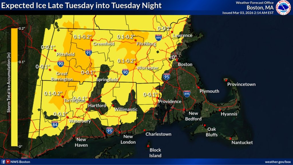 Today, Mar. 3: Snow developing midday, a Winter Weather Advisory noon to 7 am tomorrow; snow will quickly turn to freezing rain and rain shoreline and slowly turn to ice pellets and freezing rain inland. A coating to 1” of snow possible south, 1’-2” likely north; 28 F hills to 34 shoreline cities.